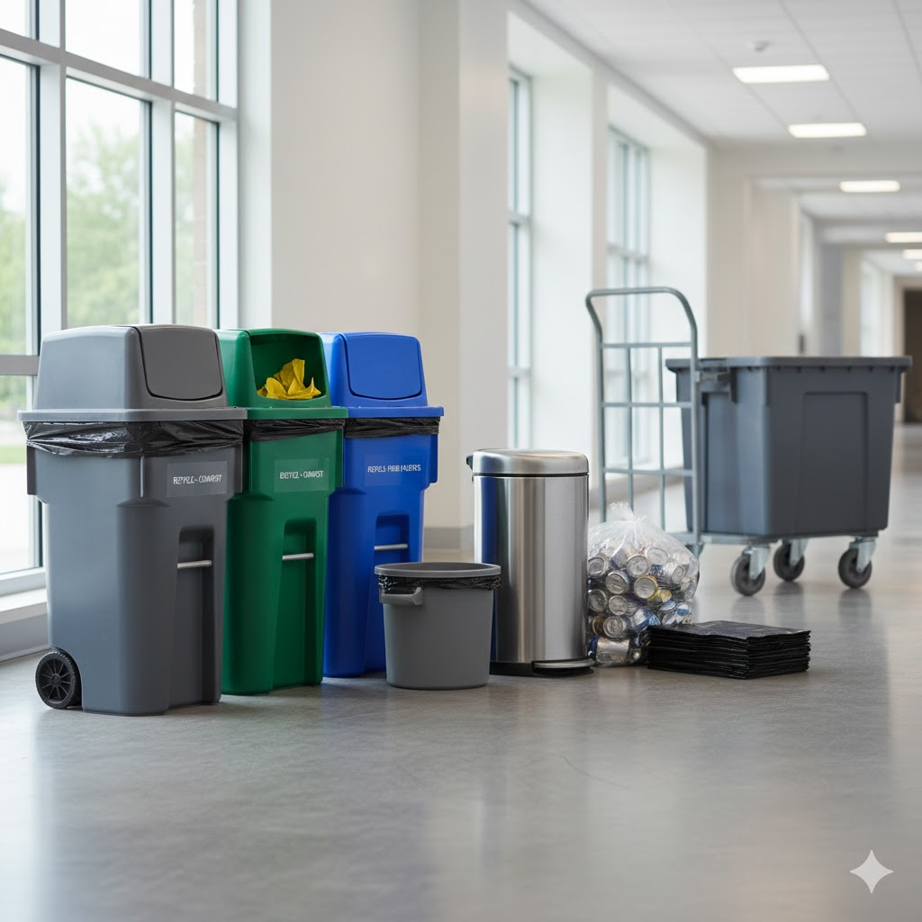 Garbage bags, color-coded bins, pedal bins & segregation solutions and more.