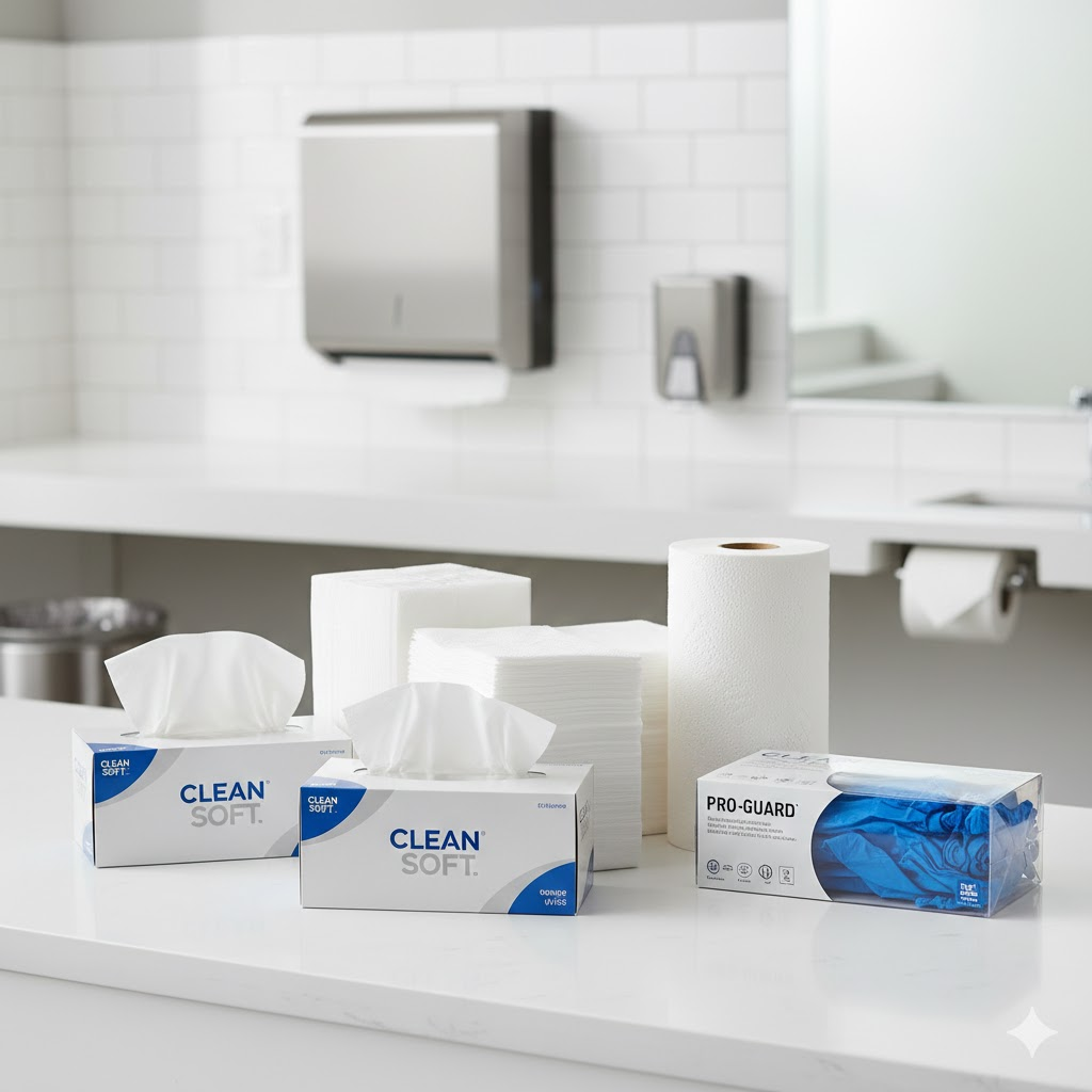 Tissues, paper rolls, hand towels, gloves & more.