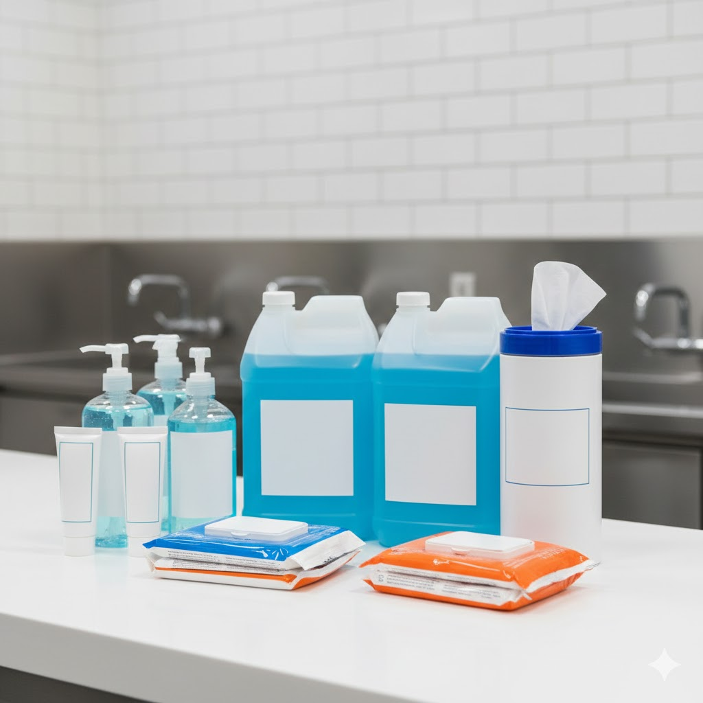 Hand sanitizers, disinfectant sprays, wipes & safety supplies.